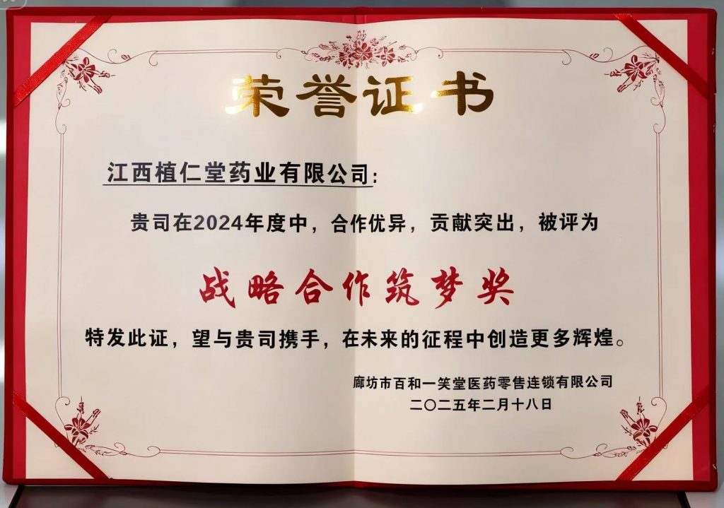 荣获2025年廊坊市百和一笑堂医药-战略合作筑梦奖